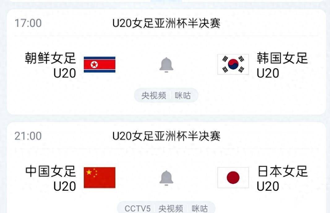 亚洲杯半决赛:中国U20女足vs日本,夺冠数1